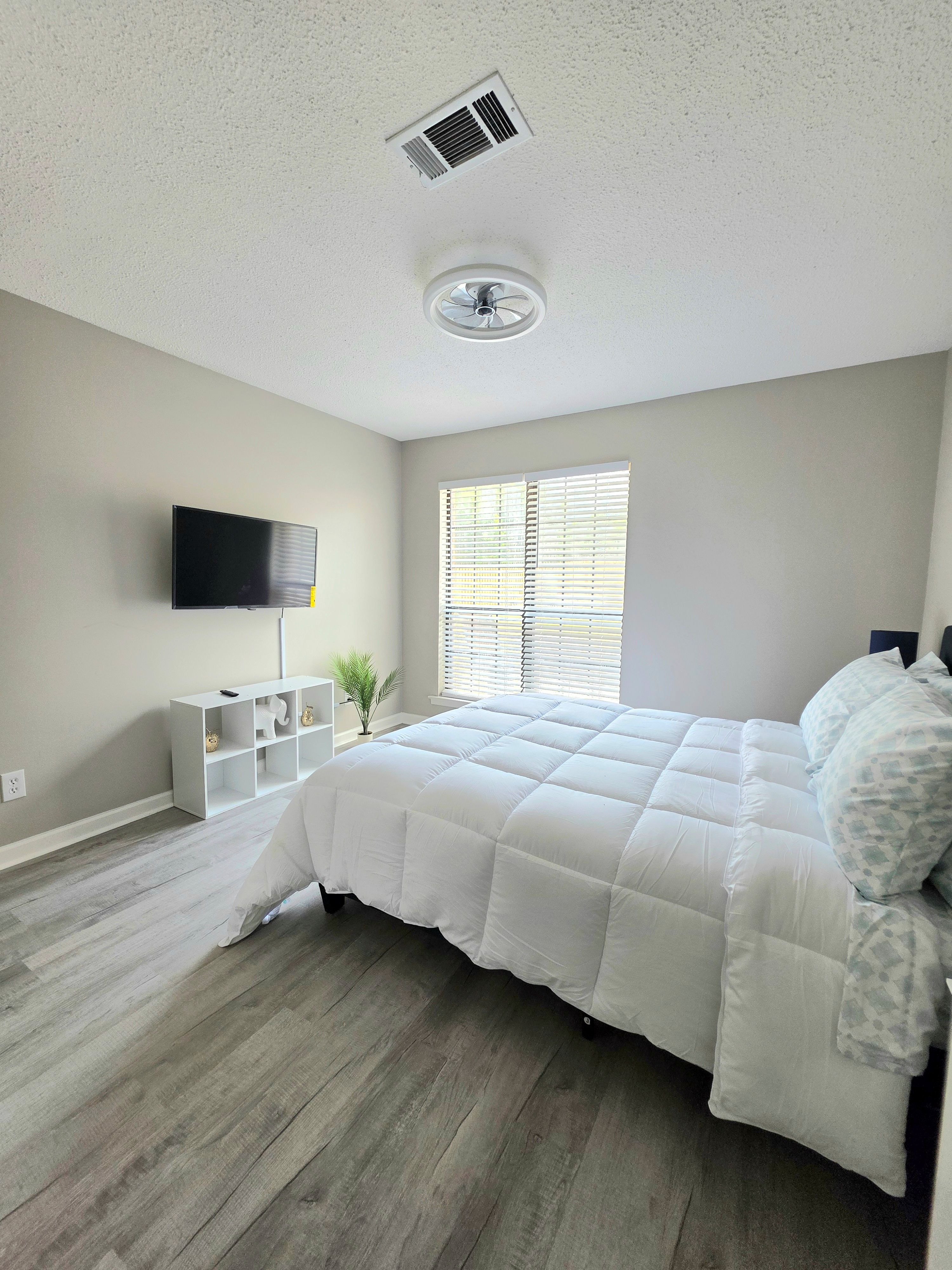 Newly Remodeled, this home has been thoughtfully updated and beautifully styled. Equipped w/ 2 Bedrooms & 2 Full Bathrooms, the home offers a bright and comfortable space to land. The home has been completely renovated and features: - Queen-size beds and medium-firm mattress in each bedroom. Primary Bedroom features private En suite and LED Vanity Mirror - Smart TVs in every room which allow you to stream your favorite apps while relaxing in bed or the living room sofa - High-speed Wi-Fi and Cable TV included - A fully equipped Gourmet Kitchen w/ Electric Stove & Oven, Dishwasher and a Full-Sized Refrigerator - Enjoy your favorite meal at the Breakfast Bar while enjoying a cup of coffee from the complimentary Keurig Kpods. - Modern bathroom with a glass-enclosed shower featuring a rainfall showerhead, and a handheld wand - Washer and Dryer w/ complimentary laundry pods and dryer sheets for your added convenience - Central air and heat - A cozy outdoor seating area for relaxing or working outside - Private Driveway and parking pad behind the home, with space for up to four vehicles - 24/7 exterior security cameras for added peace of mind Convenience is key when you're staying somewhere midterm, and this location makes daily life easy. Whether you're picking up groceries, heading out for a quick bite, or taking a break in nature, everything you need is close by and easy to access. With easy access to I-85, US-80, and Taylor Road, getting to hospitals, universities, or business centers is fast and convenient. Grocery: Publix, ALDI, Sam’s Club, and Costco are all within a short drive Shopping: Eastdale Mall and The Shoppes at EastChase offer retail, dining, and essentials Dining: Grab a meal at local staples like Sommer’s Place, La Jolla, or Hilltop Public House Parks & Recreation: Lagoon Park and Blount Cultural Park offer walking trails, golf, tennis, museums, and theater Ready for a seamless stay? This stylish, turnkey home provides everything you need to live comfortably, work efficiently, and enjoy the best of Montgomery… all in one inviting package Whether you're in between moves, working on assignment, or simply looking for a fully furnished place to stay Located in the East Montgomery neighborhood, this home combines the ease of modern living with the charm of a private residential setting. Everything is set up so you can settle in, relax, and feel right at home from day one.
